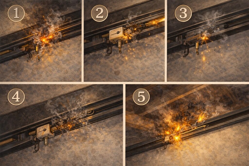 レールの通電部がショートによって一部でも溶けてしまうと、そこから先は「静かに進行する危険ゾーン」に入ります。