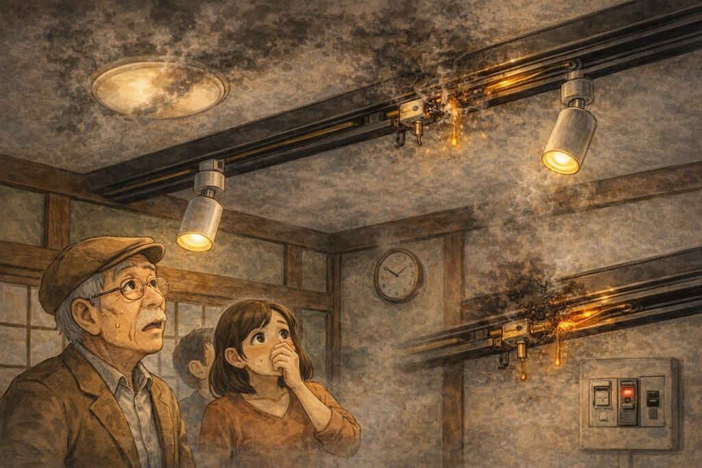 私はこれまでに、ライティングレールを原因とするトラブルの現場をいくつも見てきました。その中でも特に危険だったのが、「見た目をきれいにしたいから」と金属ワイヤーをレール内に押し込んだことによるショート事故です。