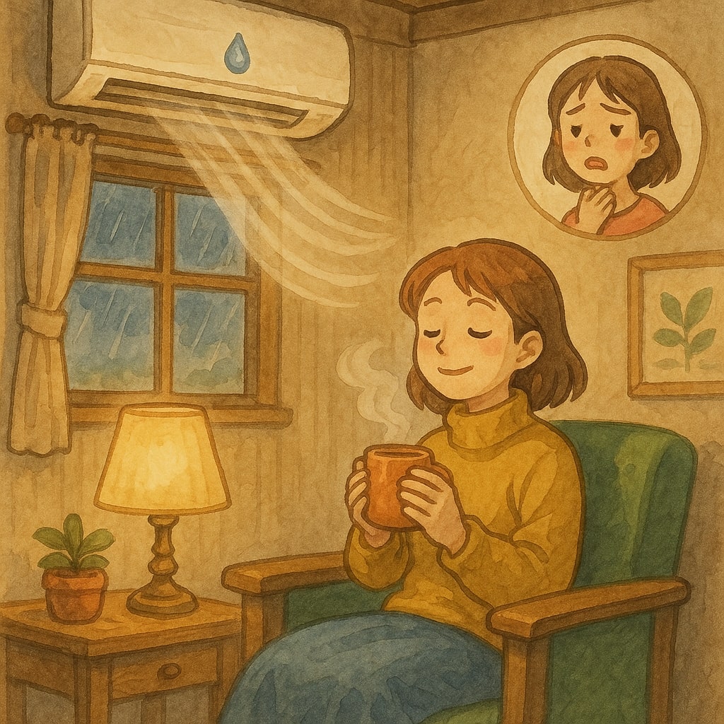エアコン暖房を使い始めると、多くの方が感じるのが**「喉が痛い」「肌が乾燥する」**といった不快感です。