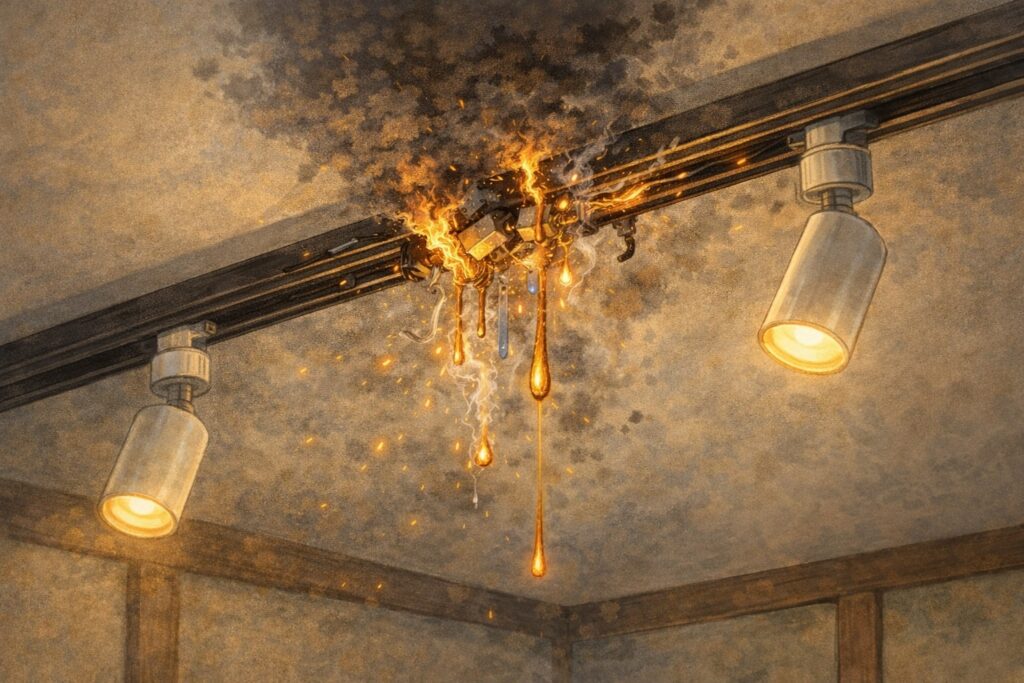 - 家庭内での事故:特にキッチンや洗面所など、湿気が多い場所に設置されたコンセントでトラッキング現象が発生することがあります。湿度が高い環境で、ほこりを介して火花が飛び散り、小規模な火災が発生したという事例もあります。