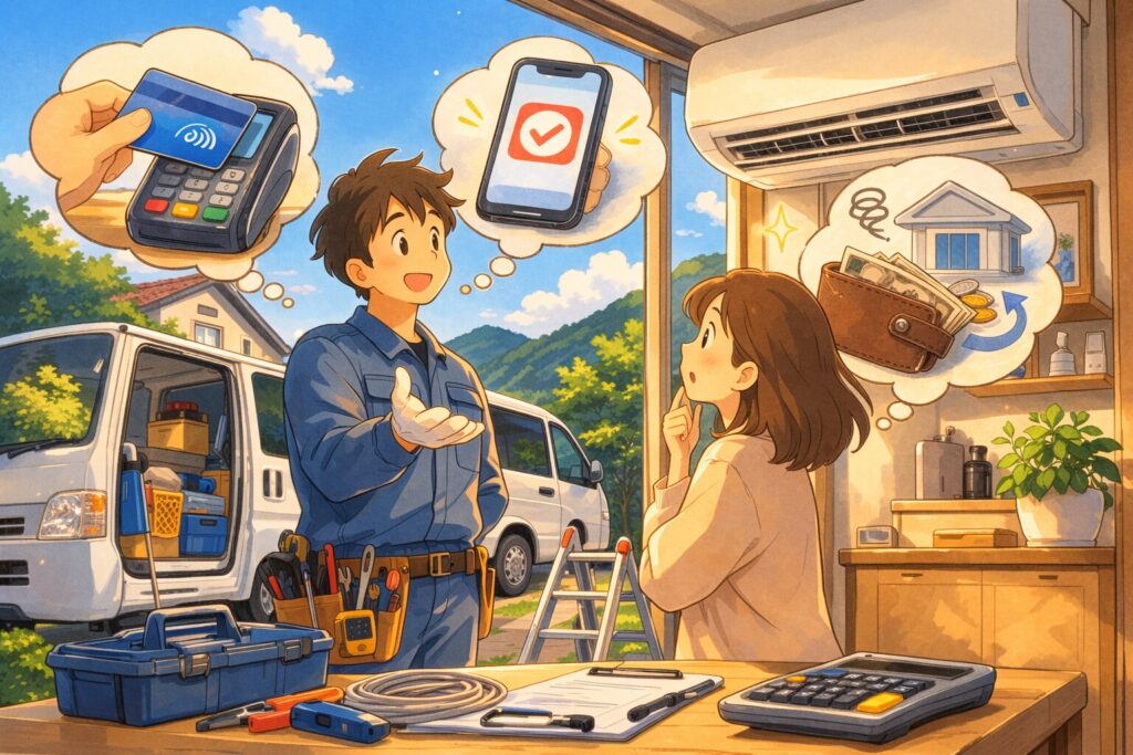 ヤザキ電気では、電気工事・エアコン工事のご依頼を「相談しやすく、頼みやすく」するために、クレジットカード払い・PayPay払いに対応しています。