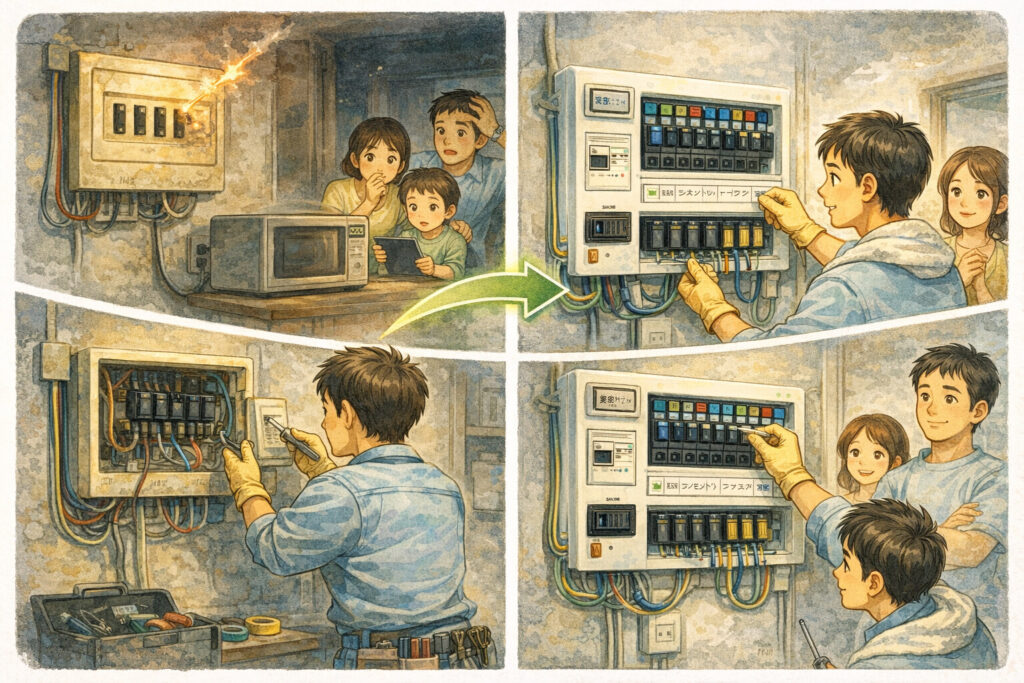 分電盤交換・回路整理は、現場状況で最適解が変わります。