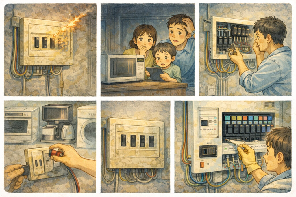 「ブレーカーがよく落ちる」「回路が足りない」「分電盤が古くて不安」「専用回路を増やしたいが空きがない」